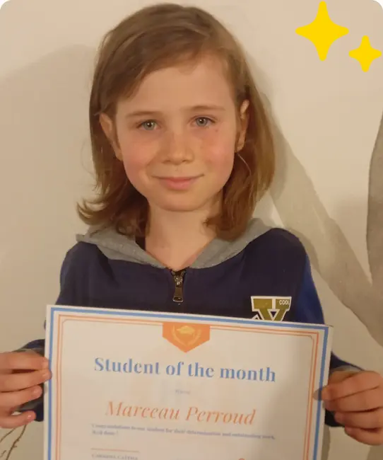 Notre professeure Hannah salue la transformation rayonnante d’Ava : “Ava rayonne absolument cette année ! Après plus d’un an passé ensemble, j’ai vu à quel point elle est devenue une apprenante confiante, dynamique et merveilleusement curieuse. Elle est toujours présente, elle donne le meilleur d’elle-même et elle illumine chaque cours. Nous avons grandi côte à côte, et je suis tellement fière de l’élève brillante et déterminée qu’elle est en train de devenir.”